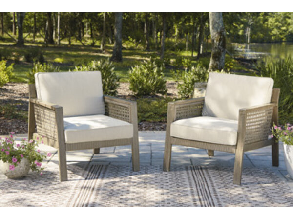 Experience blissful outdoor dining with this outdoor chair set. The simple design is sleek and stylish, while the light gray cushion in Nuvella® high-performance fabric is color-fast and a breeze to clean. Made with lace wicker over a powder coated steel frame, the chairs are stackable to save space when not in use.