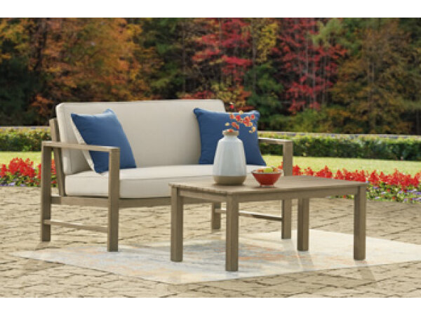 On-trend with its monochromatic design, this outdoor chair with ottoman and side table is primed for casually cool relaxation. Gray rope material woven on a durable steel frame has a subtle-yet-dynamic sense of style. A tempered glass tabletop is the perfect place for drinks and snacks, while the self-storing ottoman offers a spot for tired feet to rest while you’re chilling alfresco. All-weather cushions, covered in easy-to-clean Nuvella fabric, round out the look.