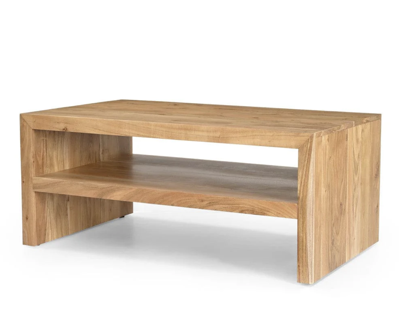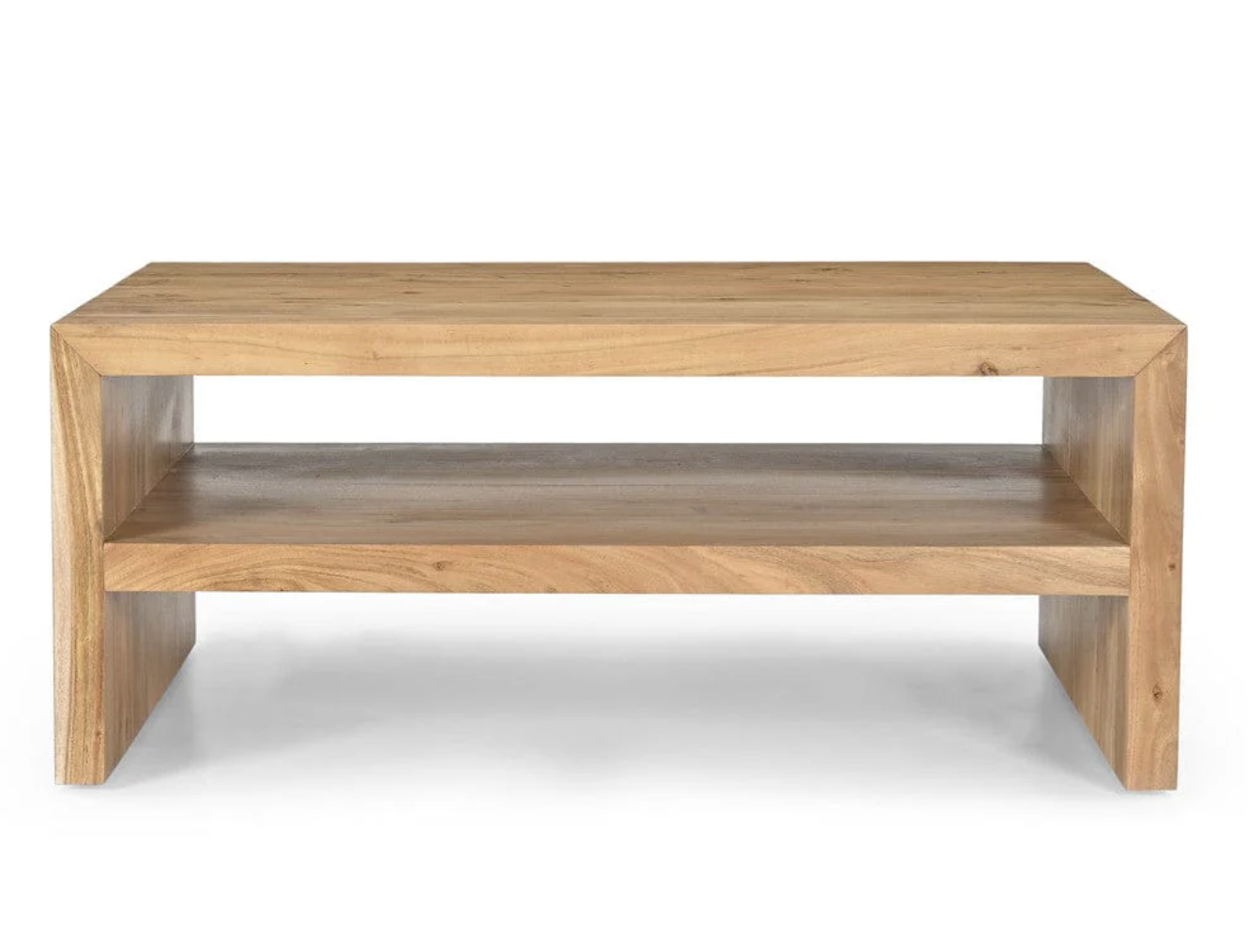 Crafted from robust mango hardwood, our Dev Modern 44-Inch Mitered Angle Coffee Table exudes contemporary elegance. Each piece showcases the intricate beauty of natural wood grain, adding depth and character to any space. The 45-degree mitered joints create crisp, squared edges, elevating its modern aesthetic. Its sleek design is a fusion of simplicity and sophistication, making it a versatile centerpiece for any living area.With a built-in storage shelf, this coffee table seamlessly combines form and function, offering practicality without compromising on style. Whether you’re hosting gatherings or enjoying quiet moments, its ample surface provides the perfect canvas for your décor and essentials. Elevate your living space with the timeless allure and practicality of our Dev Modern Coffee Table.